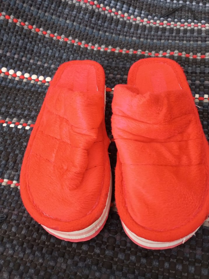Kırmızı kadın ev terliği, sıcak ve rahat dokunuşlu günlük kullanıma uygun sade tasarım.