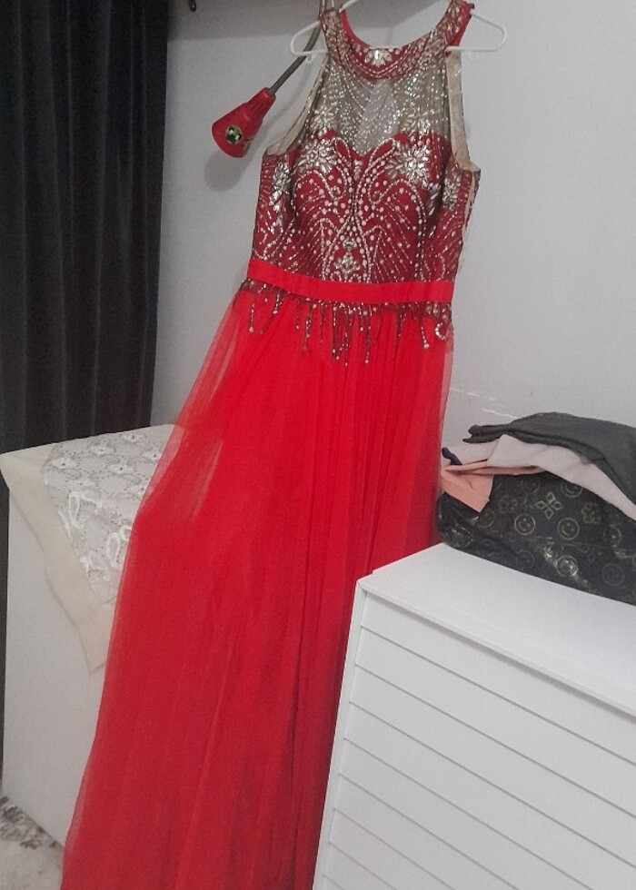 36-38 beden kirmizi abiye