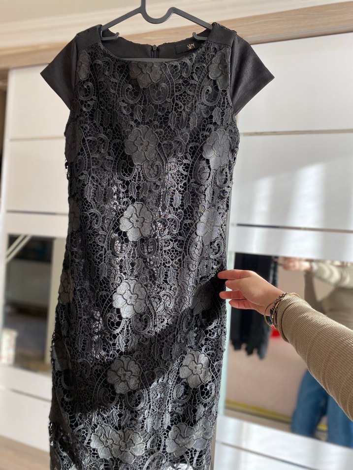 36 beden Dantel Detaylı Siyah Midi Elbise
