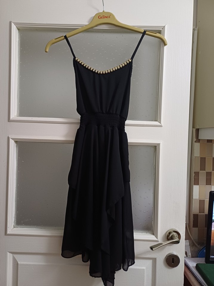 Fitted kesim siyah abiye elbise, askılı ve drapeli tasarımıyla gotik tarzı sevenler için ideal bir seçim. ✨beli lastikli ince ayarlanbilir askilari var etek asimetrik sekildedir arkasi capraz modeldir