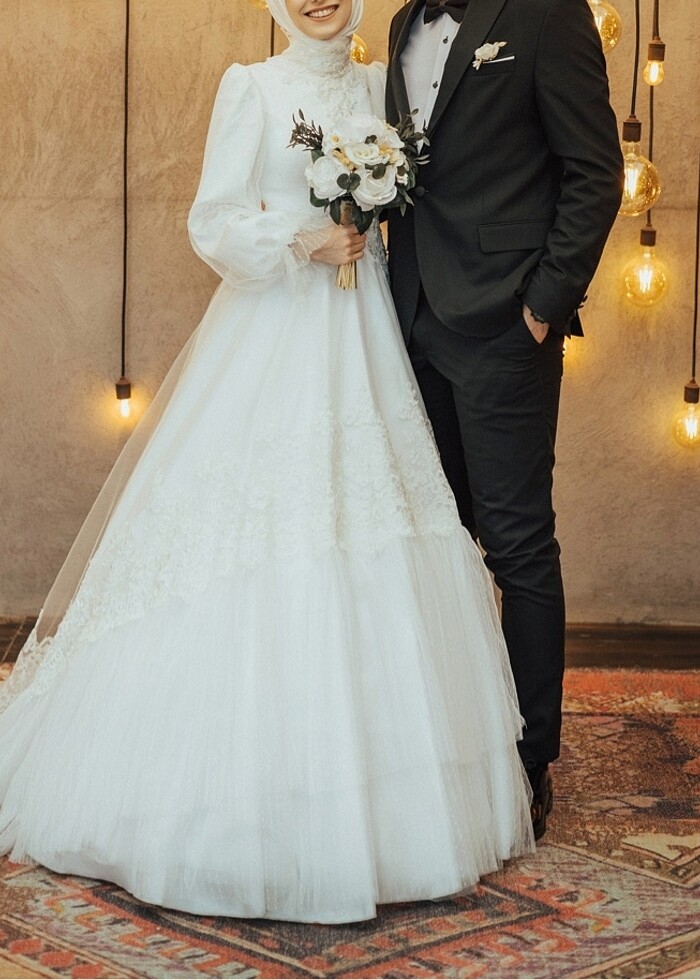 36 beden gelinliğimi satıyorum. 34 bedene de uygundur Herhangi bir deformesi yoktur. Rengi kırık beyazdır (ekru). Tarlatanı ayriyeten bulunmakta olup saç aksesuarını da hediye olarak yollayacağım. Bel ölçüsü 66 cm dir. Boyum 160 kilom 47 (bunu giydiğimde 45 falandım). Detaylı ölçüler için mesaj atabilirsiniz.