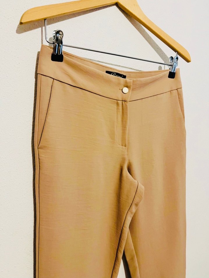 36-Bej Midi Kumaş Kadın Pantolon