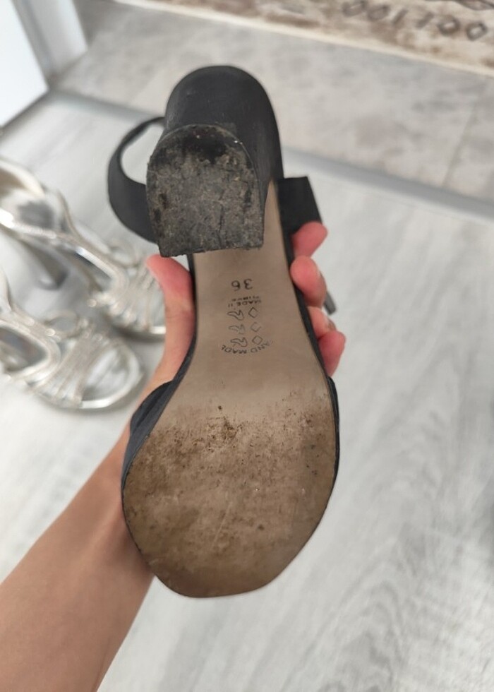 36 numara hafif simli üstündeki çiçek aksesuarı vardı ama koptu siyah kalın topuklu ayakkabı