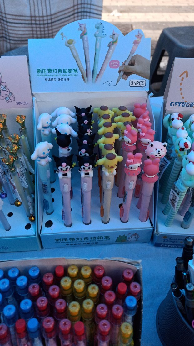 36 adet renkli, farklı karakter figürlü otomatik kurşun kalem seti, yazı ve çizim için uygundur. ✏️