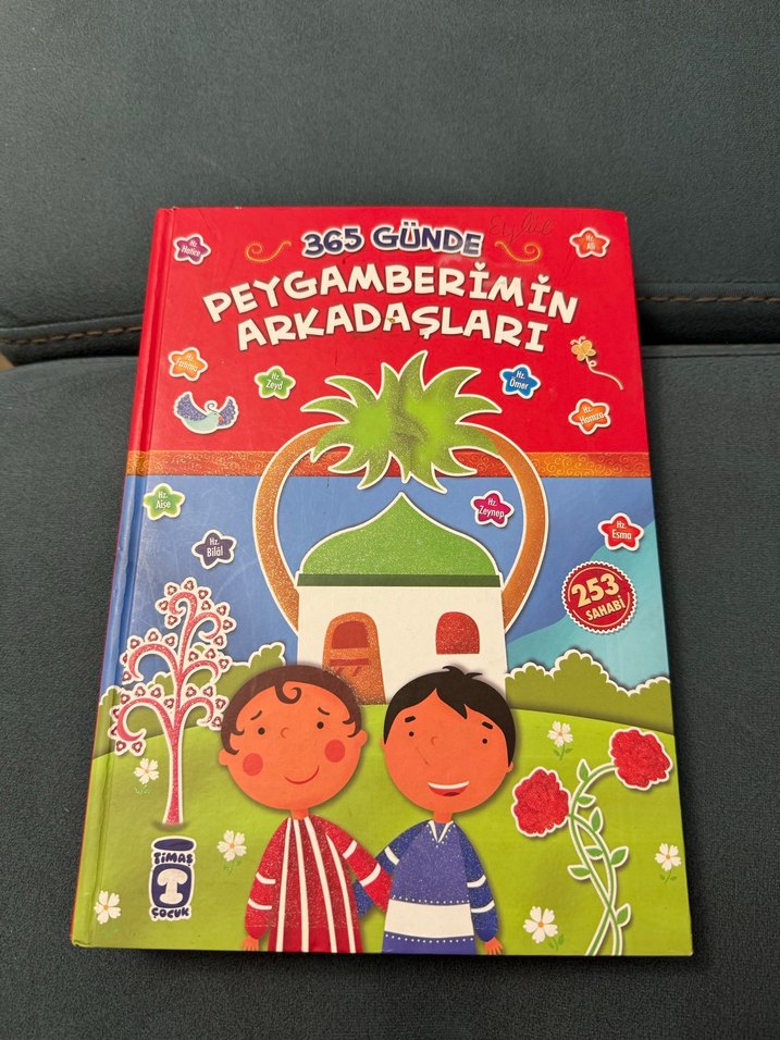 253 sayfalık, renkli çizimlerle dolu '365 Günde Peygamberimin Arkadaşları' çocuk kitabı. Kitap temiz kullanıldı herhangi bir kusuru yok istediğiniz soruyu sorabilirsiniz