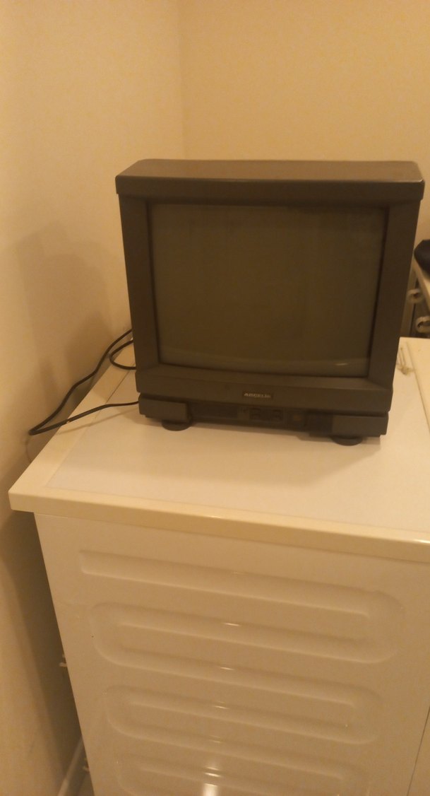 Bej renkte, klasik kalın yapıya sahip CRT monitör. Temel bağlantı özellikleri ve klasik ekran şekli bulunur. ️