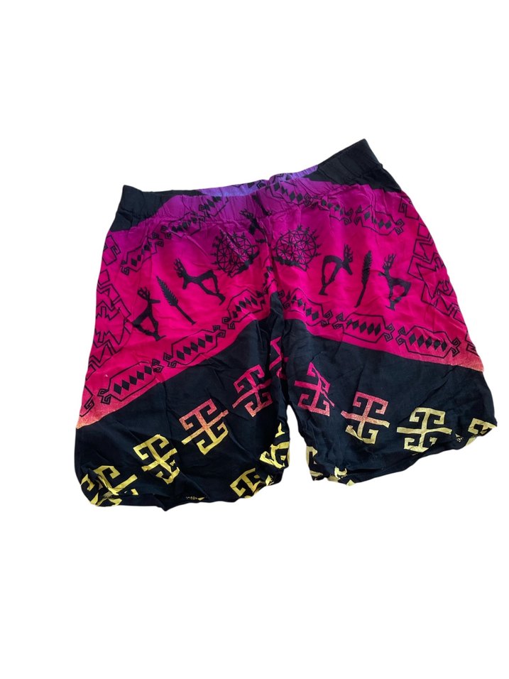 Renkli bağlama desenli, elastik bel bantlı, bol kesim şorr