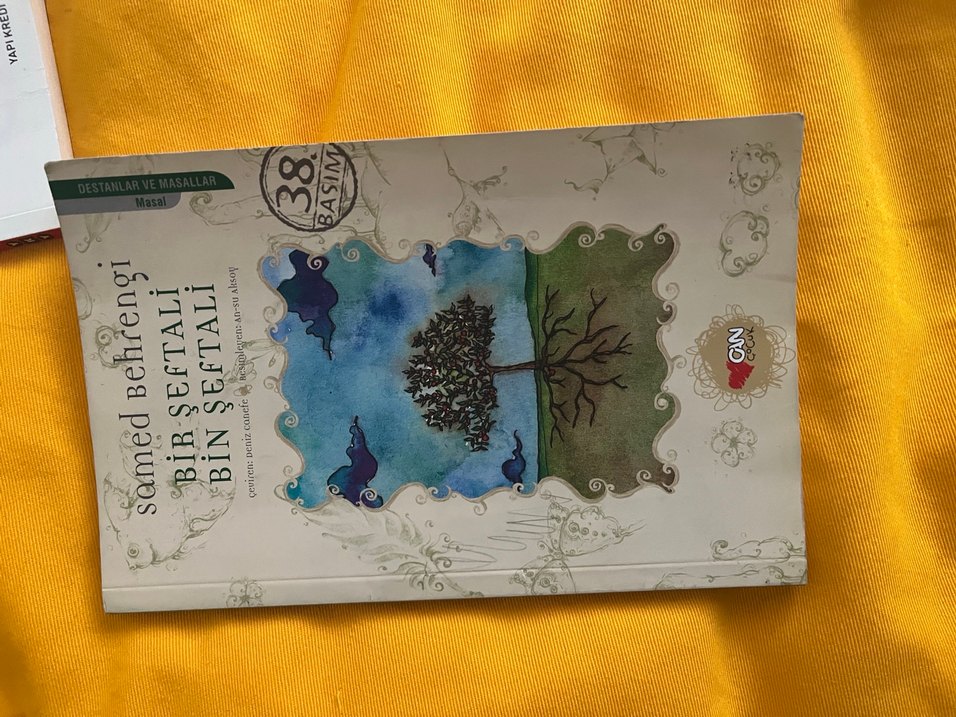 38. baskı olan bu şiir kitabının kapağında mavi gökyüzü ve yeşil zemin üzerinde bir ağaç resmi bulunuyor.