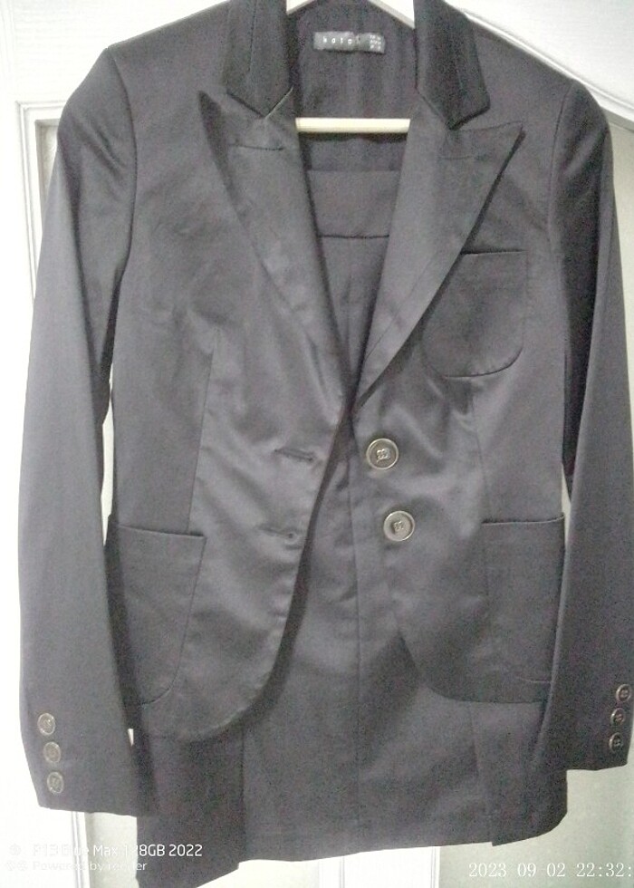 38 BDN KOTON MARKA SİYAH SATEN ETEKÇEKETT İÇLERİNDE ASTARLI ETEK ÇİFT YIRTMAÇLI 61 CM BOY BEL 38 BDN HER YERE GİYİLİR İSTEYENE İLAVE FOTOĞRAF GÖNDEREBİLRİM NOT 1 KEZ GİYİLMİŞ YENİ SIFIR SAYILIR CEKET 2 DÜĞMELİ ARASINDA YİRTMAÇ YOK