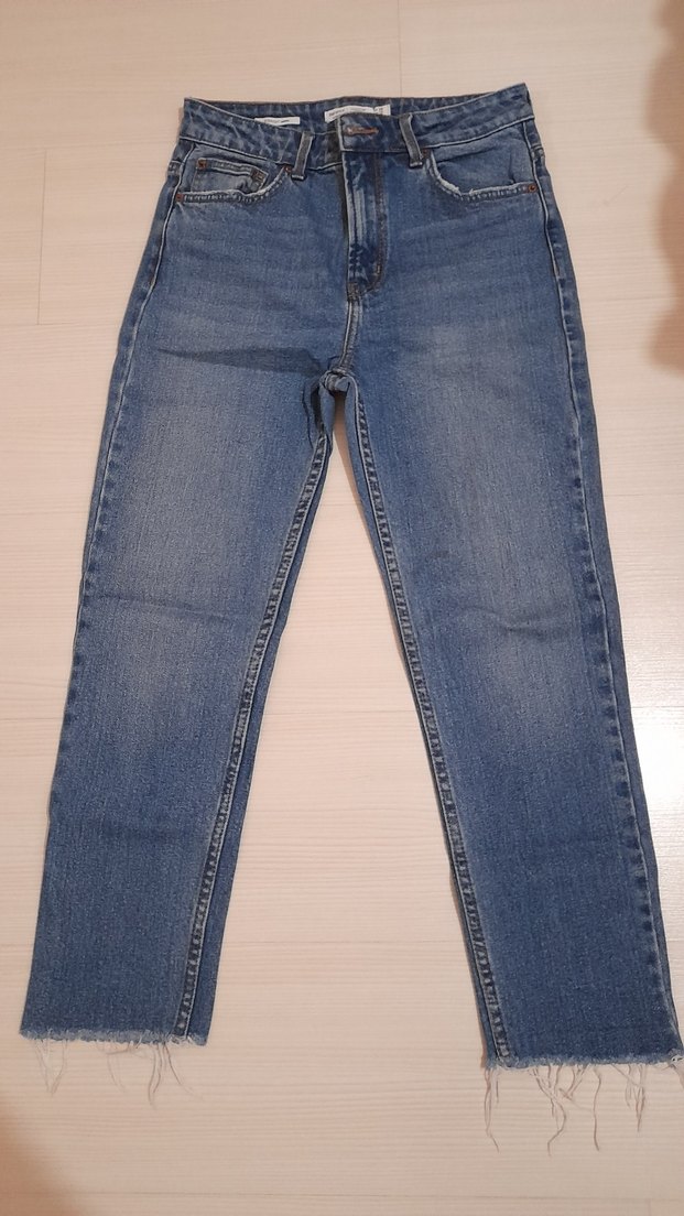 straight cropped bershka kadın kot pantolon hiç giyinilmedi paçaları püsküllü 38 beden küçük bir lekesi var son fotoğrafta mevcut