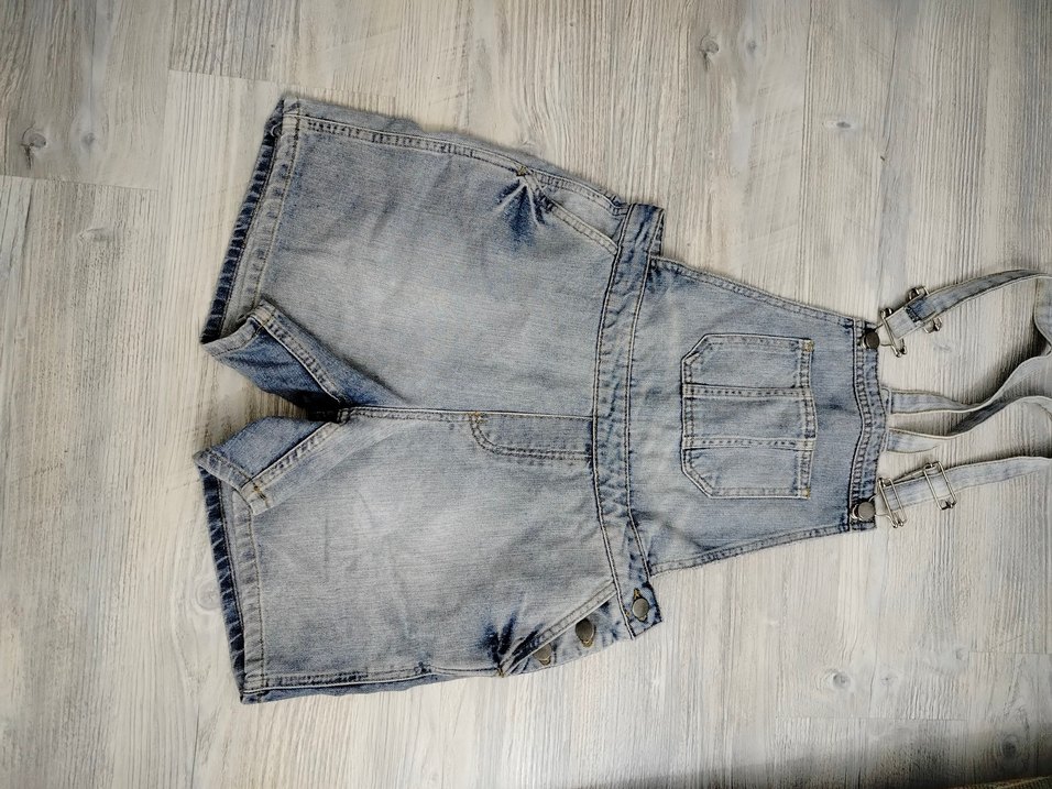 etiketi yok,bel 38 boy 37 Gri renkli, bol kesim denim kısa kadın salopet. Mini boy ve rahat sokak stilinde, günlük kullanıma uygun şık bir parça.