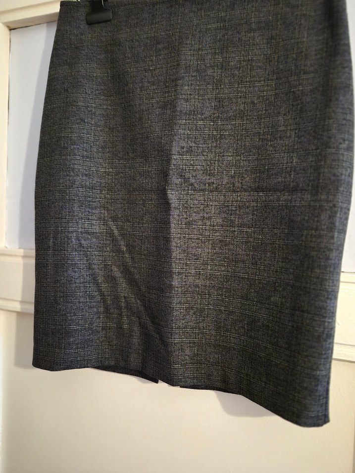 Gri midi kalem etek, düz kesim ve arka yurtmaç detaylarına sahip, yumuşak sentetik kumaştan üretilmiştir. Ofis şıklığı için uygundur, çağdaş ve sade bir tarz sunar.