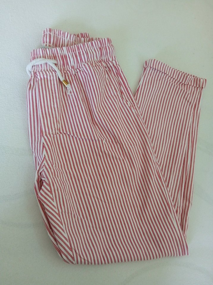 38 Beden Kadın Kırmızı Çizgili Pamuklu Pantolon