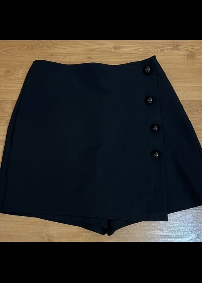 38 beden önden etek arkadan şort görünümlü şort etek.Çok şık tertemiz yeni gibi çok az giyildi.Boyu 41 santim bel 34 santim siyah önden düğme detayları var yandan fermuarlı çok şık güzel kumaş şort etek.#şık #siyah #şort #etek #şortetek