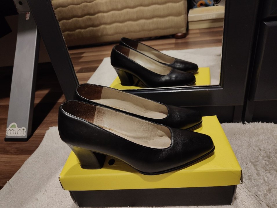 Siyah klasik, kenter marka kalın topuklu kadın ayakkabı. topuk= 6 cm