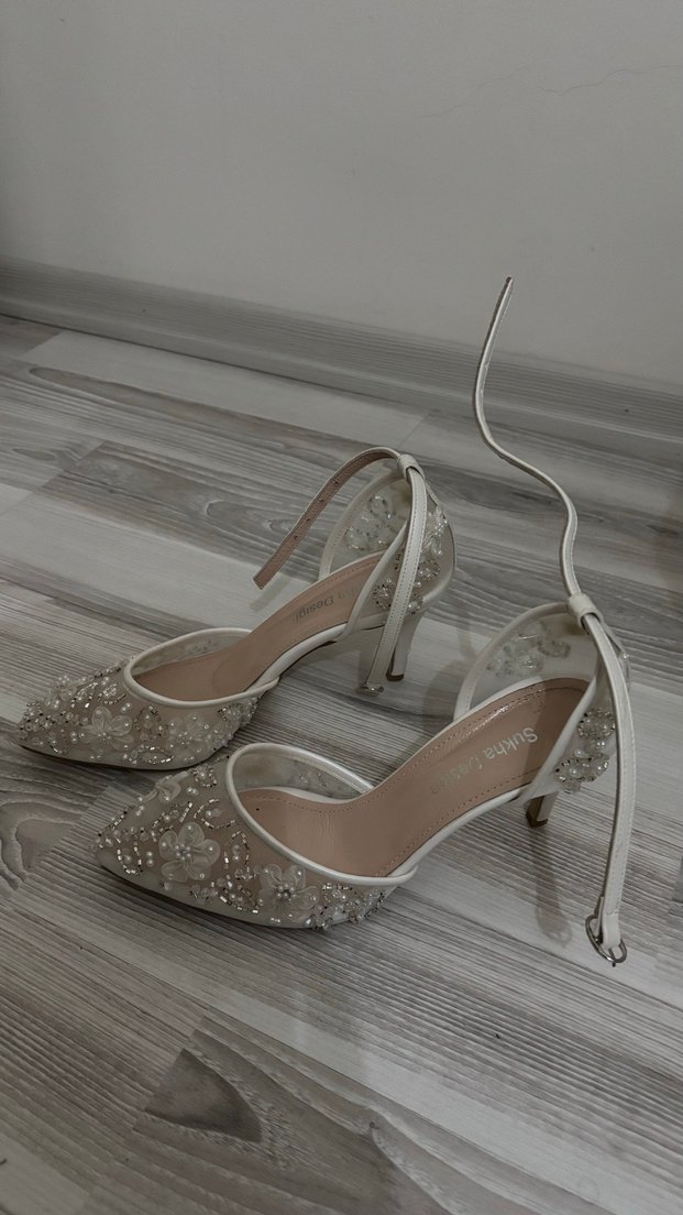 38 İnci İşlemeli Beyaz Stiletto Topuklu Kadın Ayakkabı