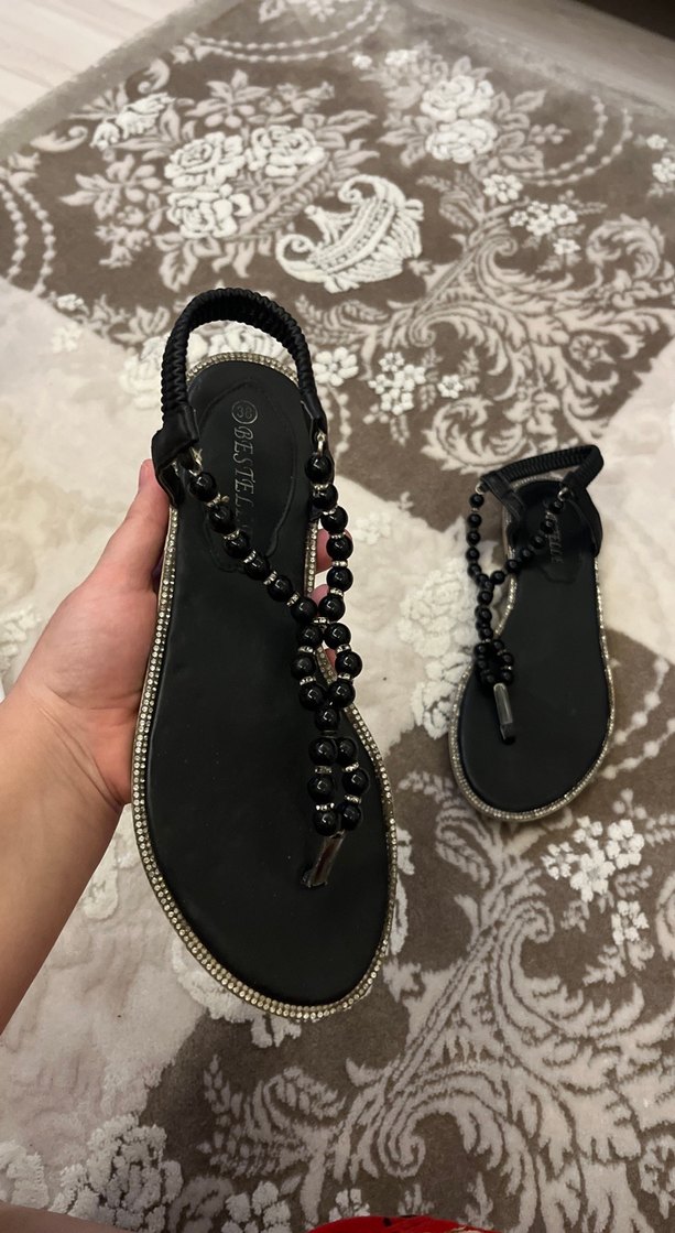 38 numara Siyah Boncuklu ince Topuklu Kadın Sandalet
