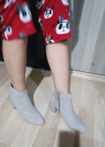 39 Numara Bambi Gri Süet Topuklu Bot Sadece 1 Kez Giyildi
