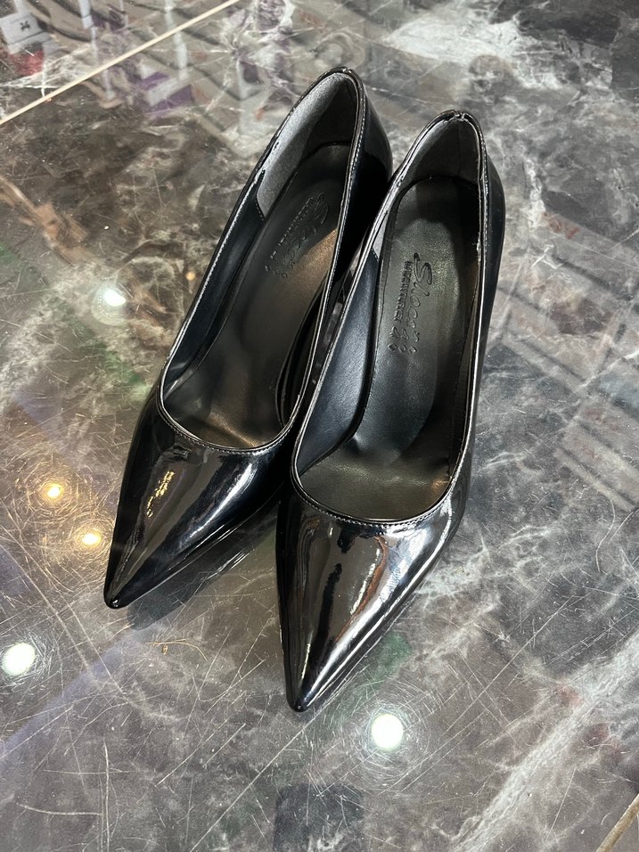 Siyah rugan stiletto topuklu Modern klasik tarzda, ofis kullanımı için uygun şık bir tasarım.