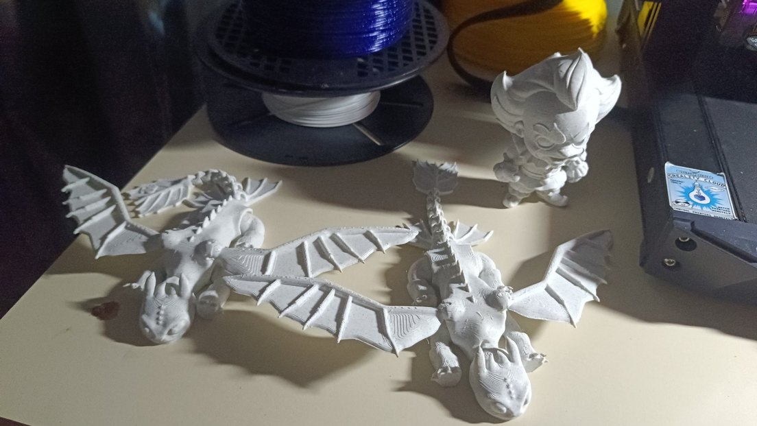 Detaylı kanatlara ve gövdeye sahip gri-beyaz malzemeden yapılmış beyaz ejderha aksiyon figürü.