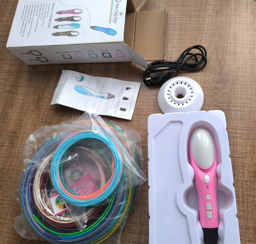 Çok renkli filamentler ve şarj ünitesi ile 3D kalem seti. Kullanım kılavuzu ve USB kablosu dahil. Yaratıcı projeler için uygun . 100 metre PLA filament yanında gönderilecek.