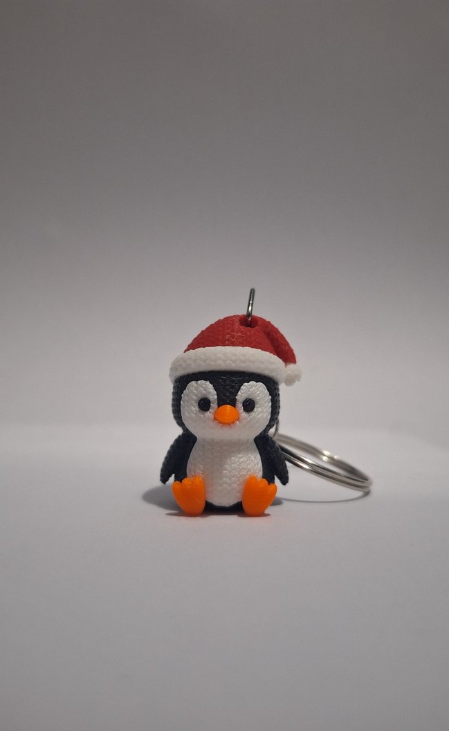 3D Renkli örgü desenli kırmızı-beyaz şapkalı sevimli penguen anahtarlık.