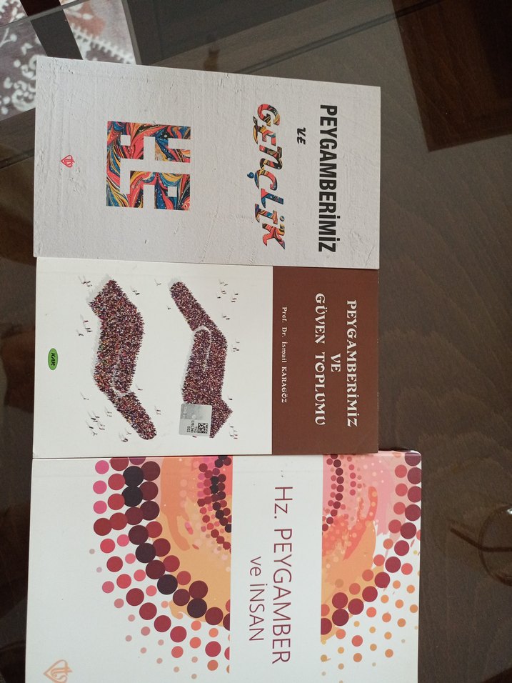 Peygamberimiz, güven toplumu ve insan temalı üç sanat kitabı. "Peygamberimiz ve Gençlik," "Peygamberimiz Güven Toplumu," "Hz. Peygamber ve İnsan" kitapları yer alıyor.