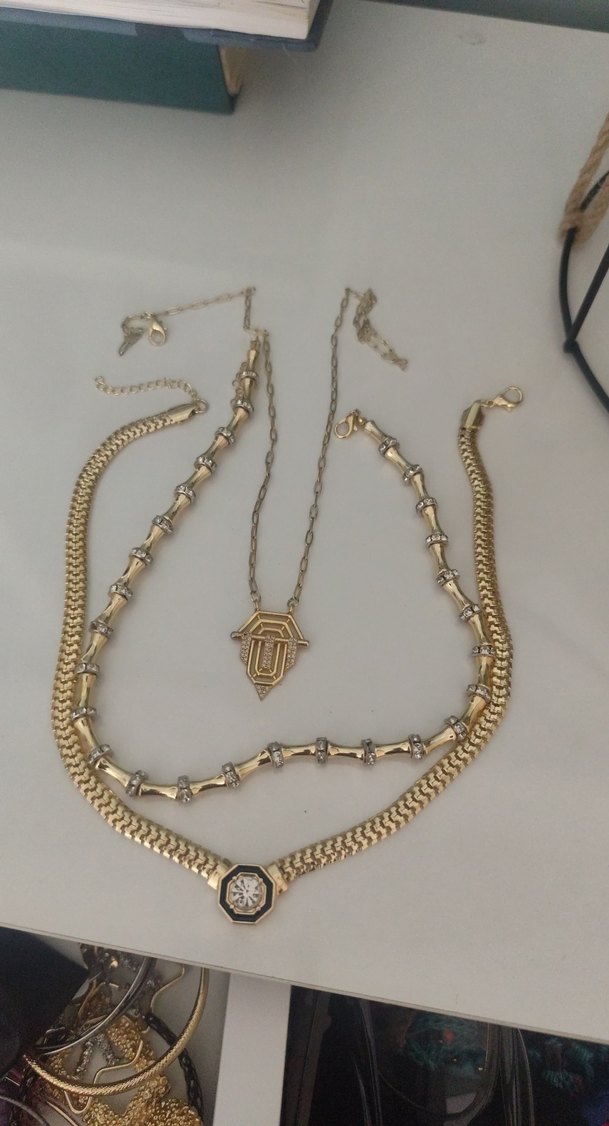 3lü Altın Renkli Uzun Zincir Detaylı serenay Kolyesi