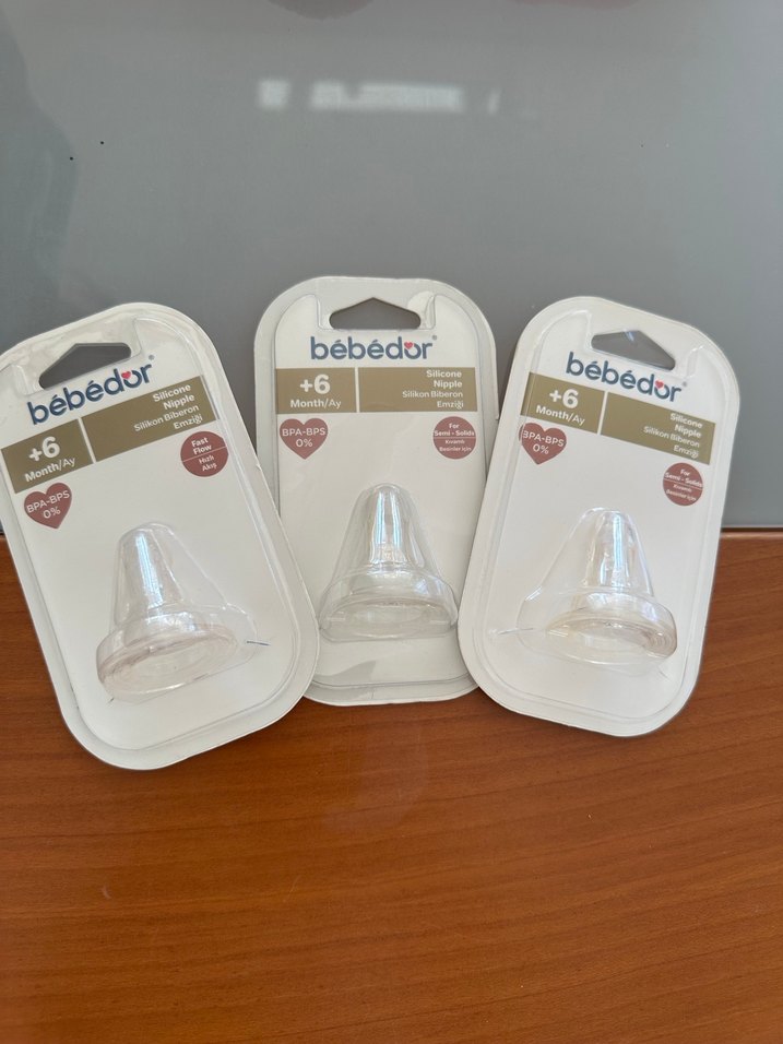 Bebedor marka, 6 ay ve üzeri bebekler için silikon biberon emziği. Kolay besleme sağlar. 3'lü paket.