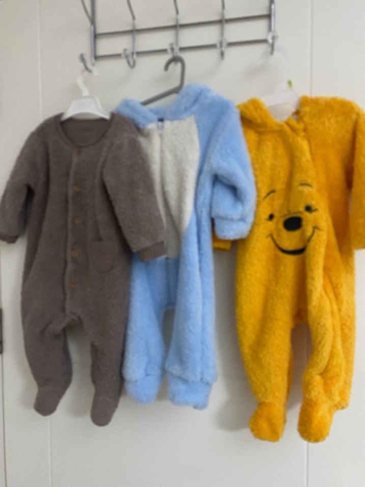 Yumuşak polar kumaştan, kahverengi renkte, renkli nakış detaylı örgü bebek tulumu. Soğuk havalar için sıcak ve rahatlık sağlar. ❄️ 6-9 ay arası giyime uygundur.