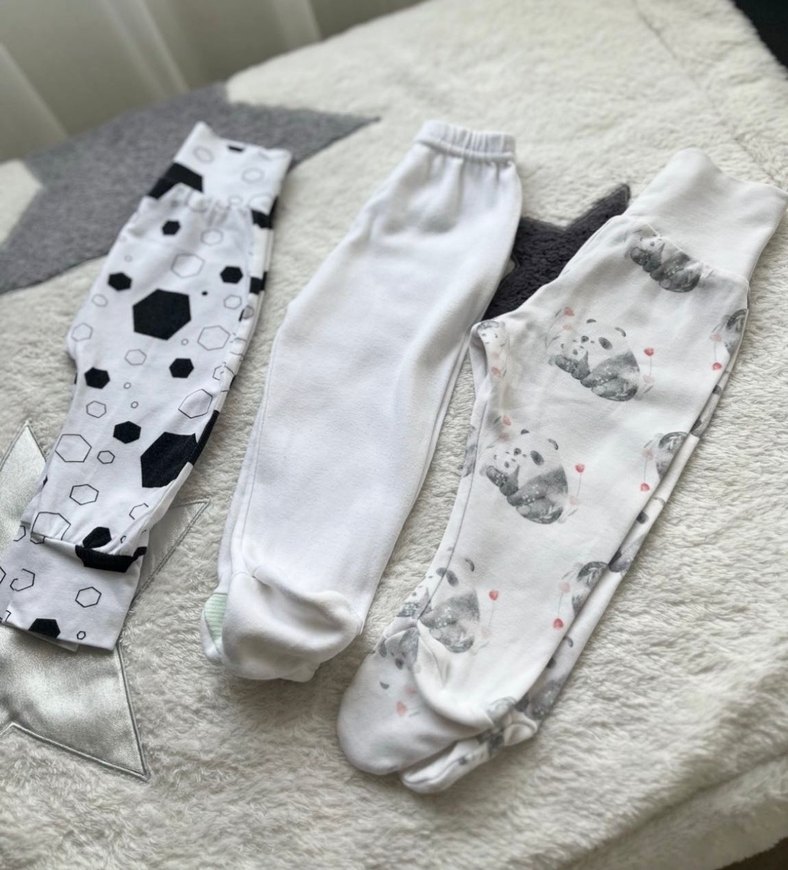 6 aylık bebek için 3’lü pantolon seti. Bebeğin boy ve kilosuna göre 9 aya kadar da rahatlıkla olur. Durumu normal, yırtık yok, dikişler sağlam. Sadece birinde ütüden kalan çok yumuşak ve görünmez minicik bir iz var; kamerada bile çıkmadı. Evde giymek için mükemmel bir set