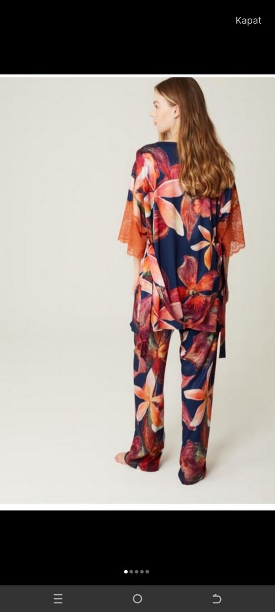 3 parça Kısa kollu, bol kesim, bohem tarzda, koyu renkli çok renkli bağlama desenli kadın mini pijama, dantel detaylı.