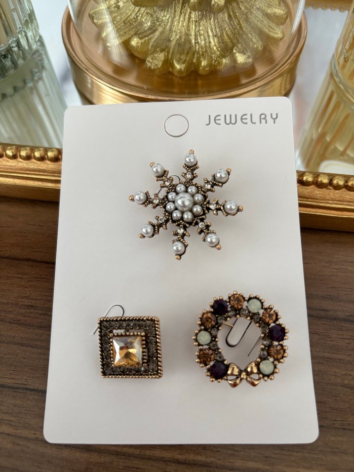 3’lü şık broşlar ister kazaklarınızda ister kabanlarınızda ceketlerinizde kullanıp kombinlerinizi ışıldatabilirsiniz