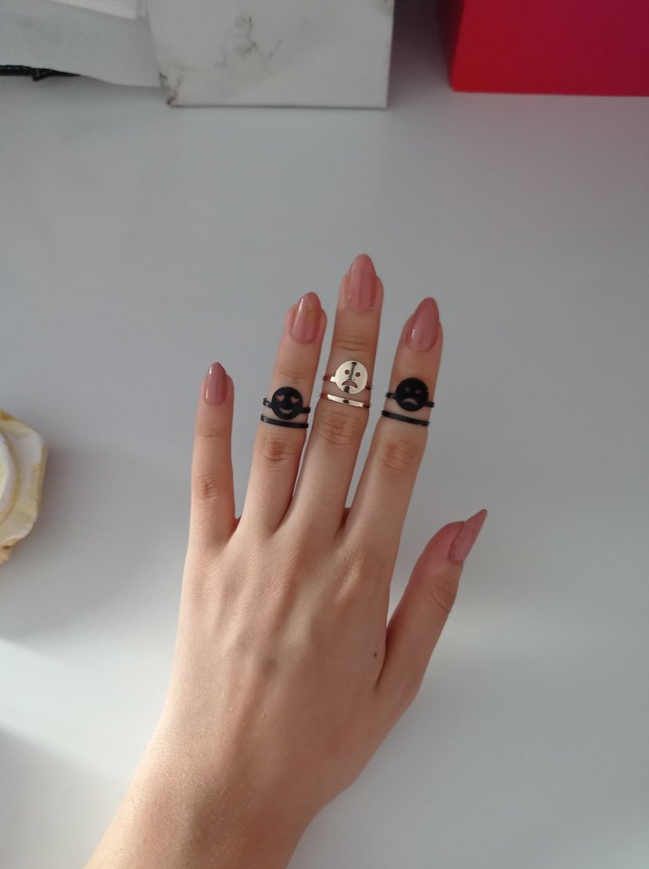 Minimalist gotik tarzda, gündelik kullanıma uygun, zahmetsiz şıklık sunan siyah kadın yüzük seti.