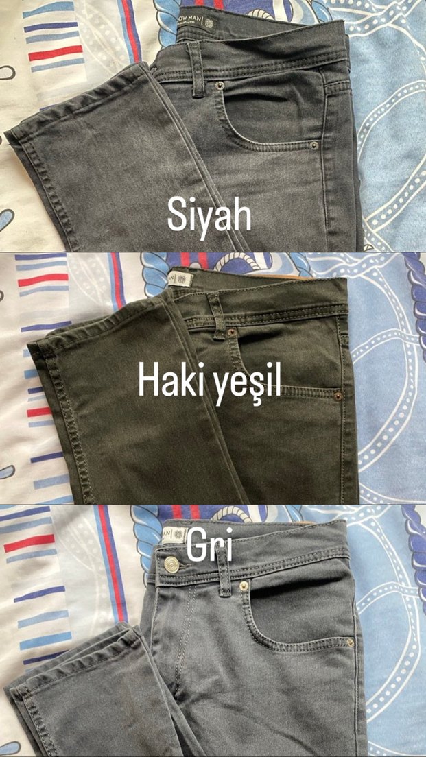 3 adet haki,siyah ve yeşil pantolon olmak üzere sadece denenmiştir düzenli giyilmemiştir.
