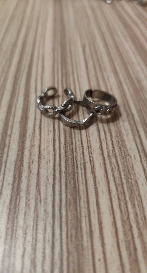 Gri renkte, zincir detaylı, minimalist tasarıma sahip kadın yüzüğü. Romantik akşamlar için uygun ve normcore tarzda. Artık kullanmadığımdan satıyorum. Marka temsilidir. Herhangi bir kararması yoktur. İlgilenenler yazabilir❤️