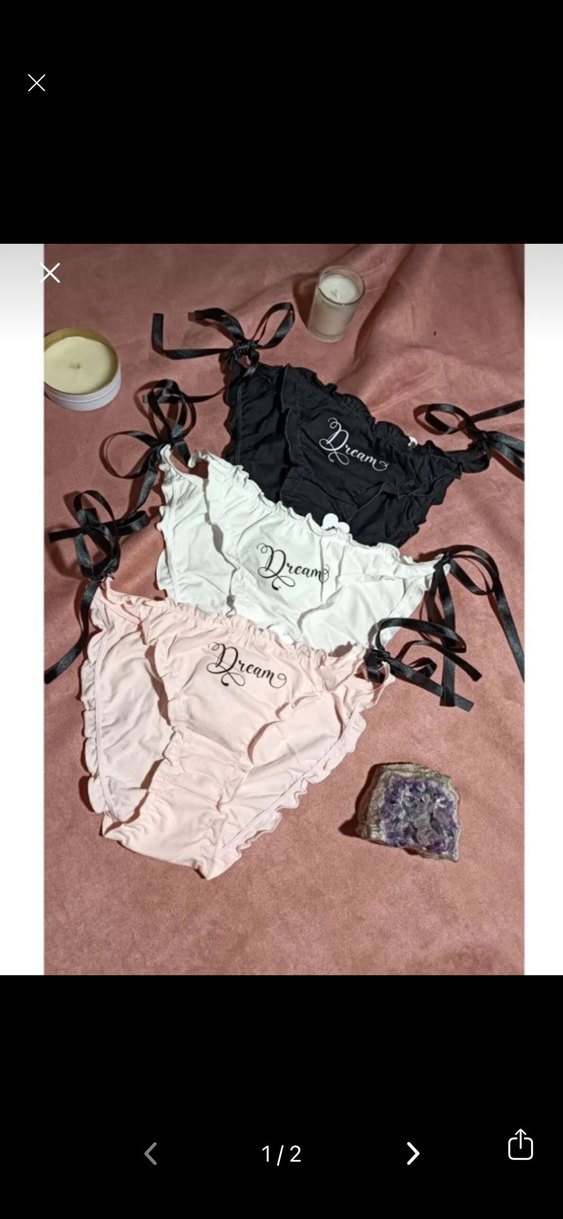 Nakışlı "Dreams" yazılı, pastel renklerde Parisli tarzı ve gotik esintili kadın külot seti. Midi uzunlukta, kurdele bağlamalı tasarımlar. ✨