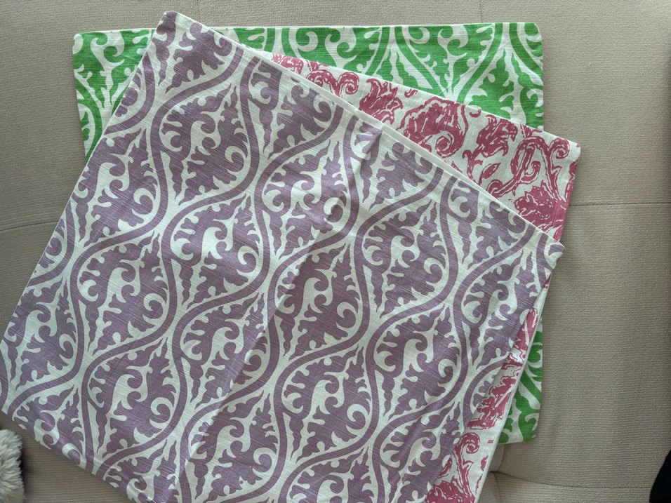 Gri, yeşil ve kırmızı renklerde baskılı, klasik desenlere sahip kırlent kılıfları 3 adet fiyatıdır . ️