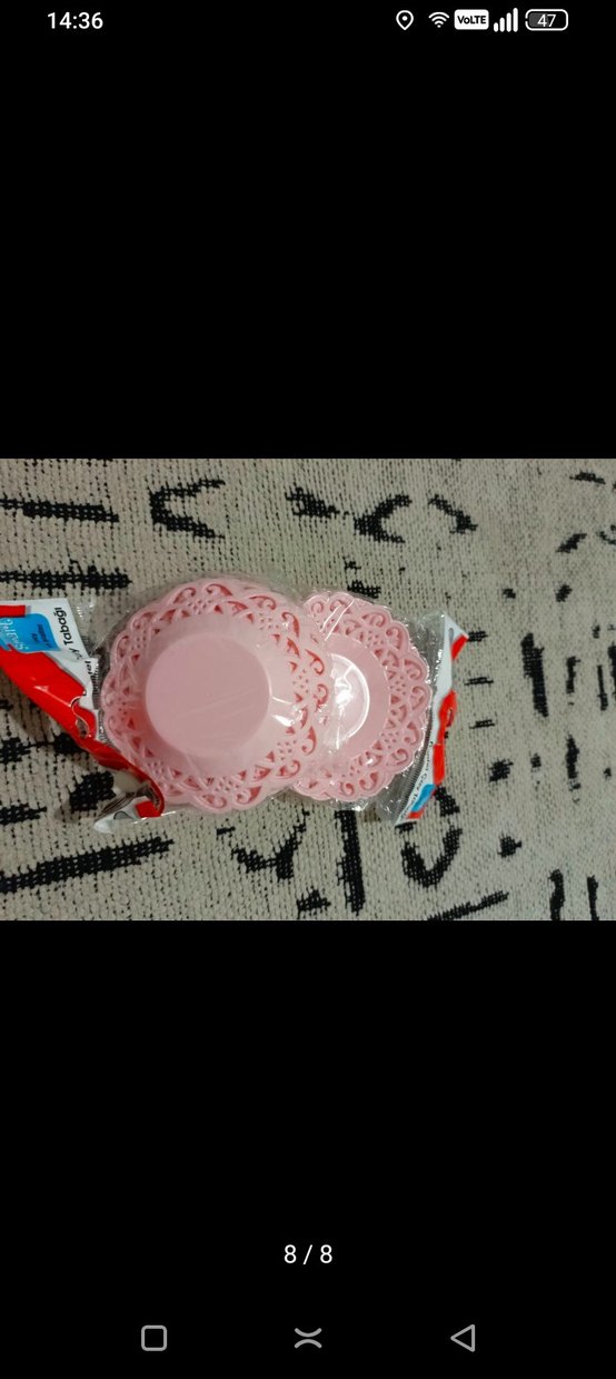 Dekoratif tasarımlı, renkli pembe çay tabakları. kurabiye kalıpları hariç hiç kullanılmadı. çay tabakları plastiktir piknik için kullanışlıdır. pembe nihale hiç kullanılmamıştır.