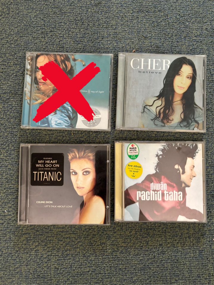 Cher, Celine Dion ve Rachid Taha'nın yer aldığı 3 müzik CD'si seti. Farklı türlerde popüler şarkılar içerir. Yabancı Müzik CD • 3 adet • #celinedior #cher #rachidtaha #cd #müzik adet fiyatıdır • teklif veriniz • madonna satılmıştır