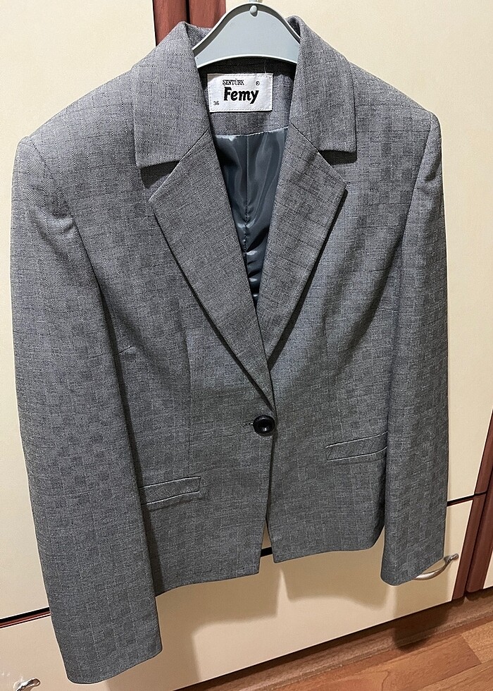 36 beden. Astarlıdır. Yeni temizdir. Kuru temizleden gelmiştir. Ceketi astarlı, vatkalı ve tek düğmelidir, pantolonu İspanyol paçadır, eteği astarlıdır ve pililidir