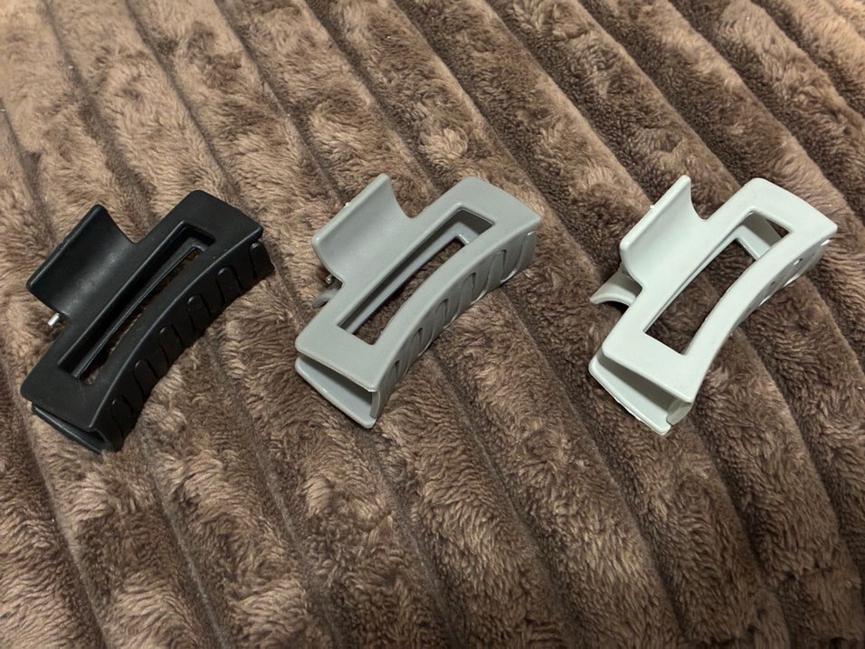 Gri plastikten yapılmış, tokalı ve sade tasarımlı çağdaş saç tokası.