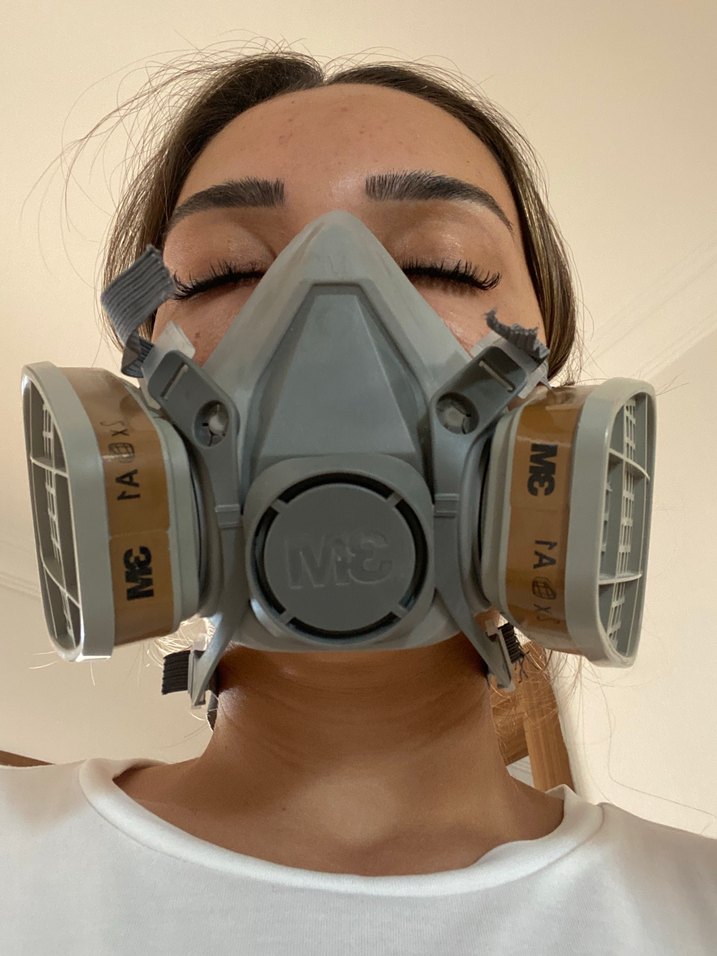 3M marka 6200 yarı yüz gaz maskesi, çift filtreli ve ayarlanabilir kayışlıdır. TA tipi filtre içerir.