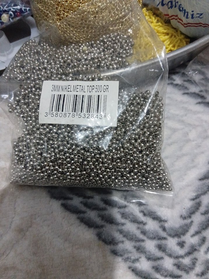 3mm çapında gri nikel metal boncuklar, 500 gramlık poşette tırnak süslemeye uygun. ✨
