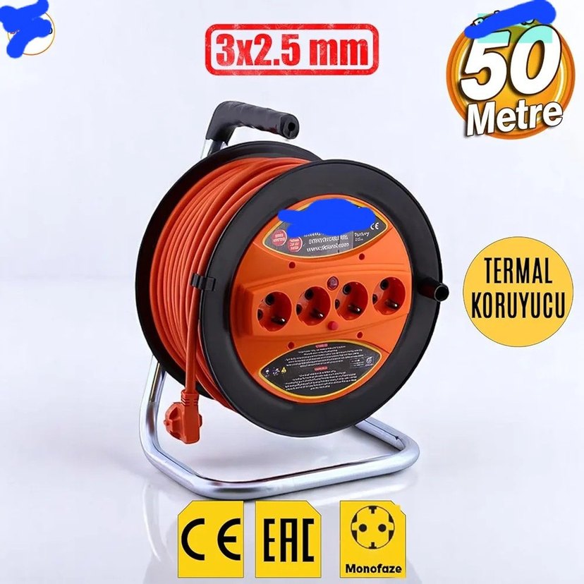 Turuncu renkli, 3x2.5 mm kesitli monofaze uzatma kablosudur. CE ve EAC sertifikalarına sahiptir. Dayanıklı makaraya sarılıdır.