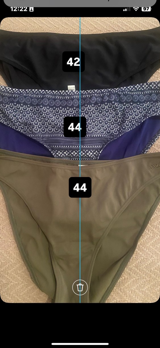 3 adet , toplu satış. 3 adet alt bikini. Etikette 44 yazsada, bence 42/44 beden. Bir tanesinin etiketi çok kalın olduğundan kesmiştim. Tertemiz yıkandılar, lastikleri iyi, hepsi çift kat