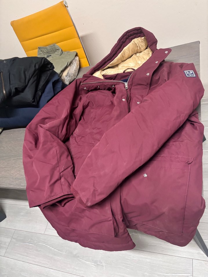Bordo renkte, rahat kesim ve çıtçıtlı yaka detaylı erkek mont. Yumuşak ve sıcak kumaş, fermuarlı ve midi boy, günlük sokak stili için uygun.