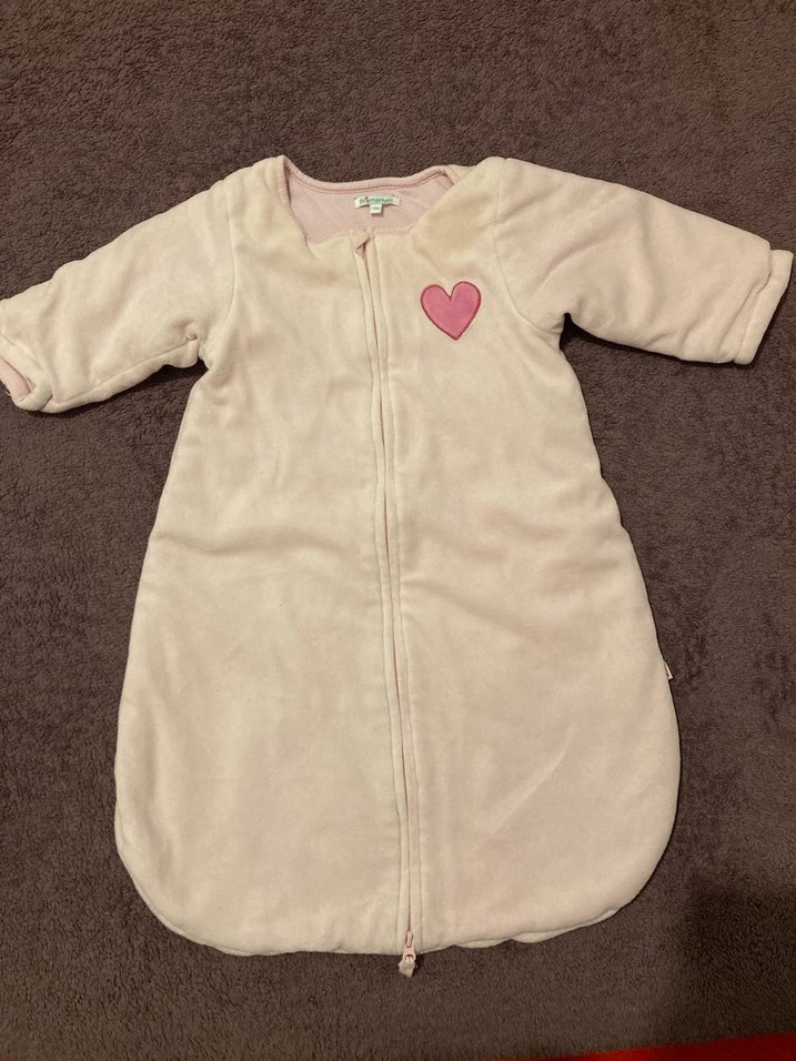 Yurtdışı ürünüdür. Pembe yumuşak polar kız bebek uyku tulumu. Önünde fermuar ve küçük kalp detayı bulunur. Yurt dışından ( Fransa) aldım. Fermuarı dahi alttan bebeğin bogazına zarar vermemesi için tasarlanmıştır. 4 ay - 12 ay kullanılabilir. Yumuşacık polar kumaştır, bebeklerin hassas cildi için tasarlanmış. Bebeğime küçük geldiği için satıyorum.
