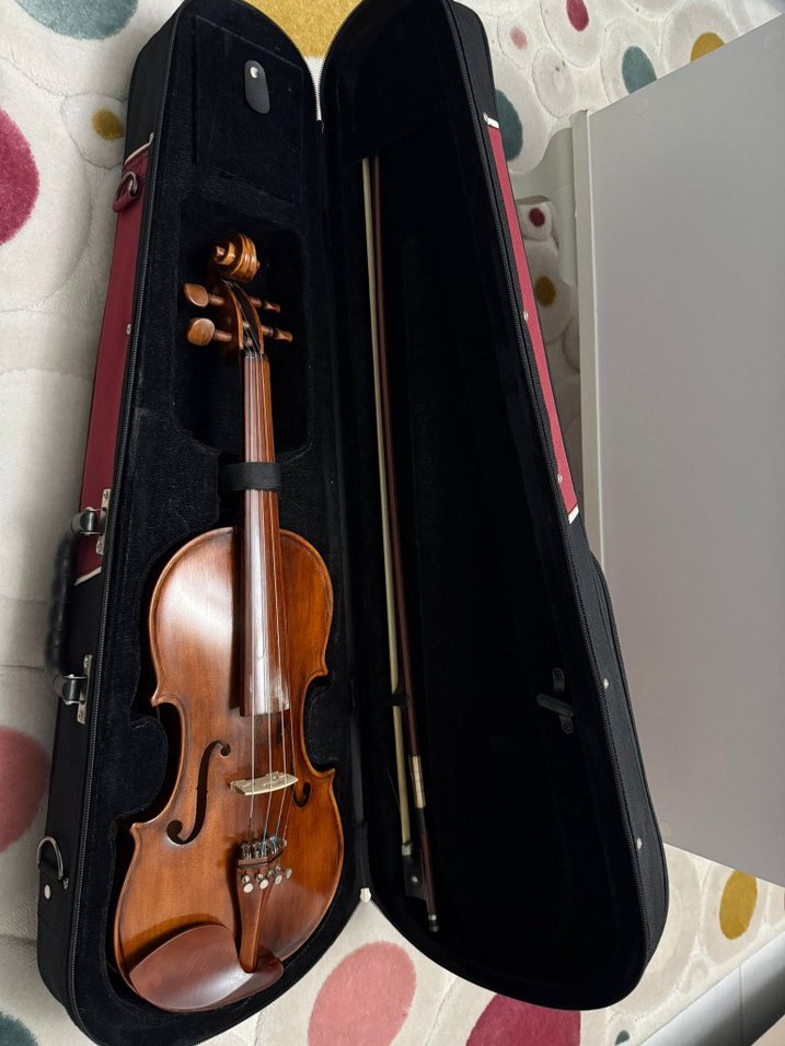 Satılık 4/4 Keman –Çanta + Yay + Teller Dahil kemanım, profesyonel luthier (keman ustası) tarafından revize edilmiş, sahne ve eğitim kullanımı için ideal bir enstrümandır. El işçiliği ve doğal malzeme kalitesiyle öne çıkan bu keman, kesinlikle fabrikasyon ürünlerle karıştırılmamalıdır. Boyut 4/4 (Tam boy) – yetişkin kullanımı için uygundur Gövde Ön ve arka kapaklar ladin ağacı – rezonans ve ses kalitesi yüksek Çenelik & Tuşe Gül ağacı – hem estetik hem dayanıklı Burgular Gül ağacı – hassas akort imkanı yay Tam yay – dengeli çekiş ve hassas tepki teller Yeni takılmıştır – çalmaya hazır Usta tarafından yapılmış; köprü, eşik, burgular ve ses ayarları tamam Ton Karakteri: Sıcak, dengeli ve rezonansı güçlü. Hem solo performanslar hem de grup çalışmaları için uygundur.Bu keman, seri üretim değil; el yapımı revize bir kemandır. Malzeme kalitesi ve işçilik açısından uzun ömürlü ve müzikal açıdan tatmin edici bir enstrümandır.