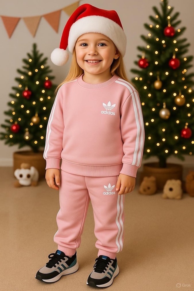 Yumuşak fleece kumaştan, uzun kollu ve bisiklet yaka, pembe Adidas kız çocuk eşofman takımı. Pastel tonlarda baskılı çizgilerle şık ve rahat görünümlü.